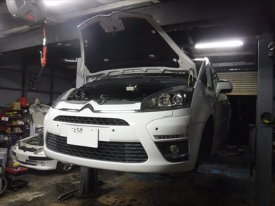 こちらのシトロエンC4ピカソ 1.6Tエクスクルーシブ ブランバンキーズは車検整備での入庫ですね。